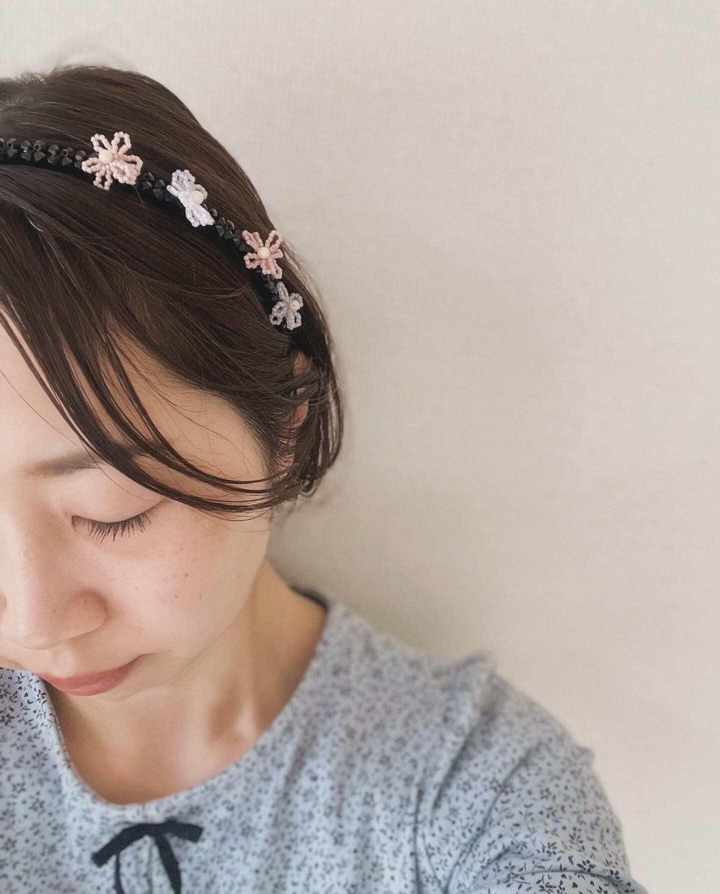 ビーズを組み合わせたお花のデザインが特徴的なカチューシャです。